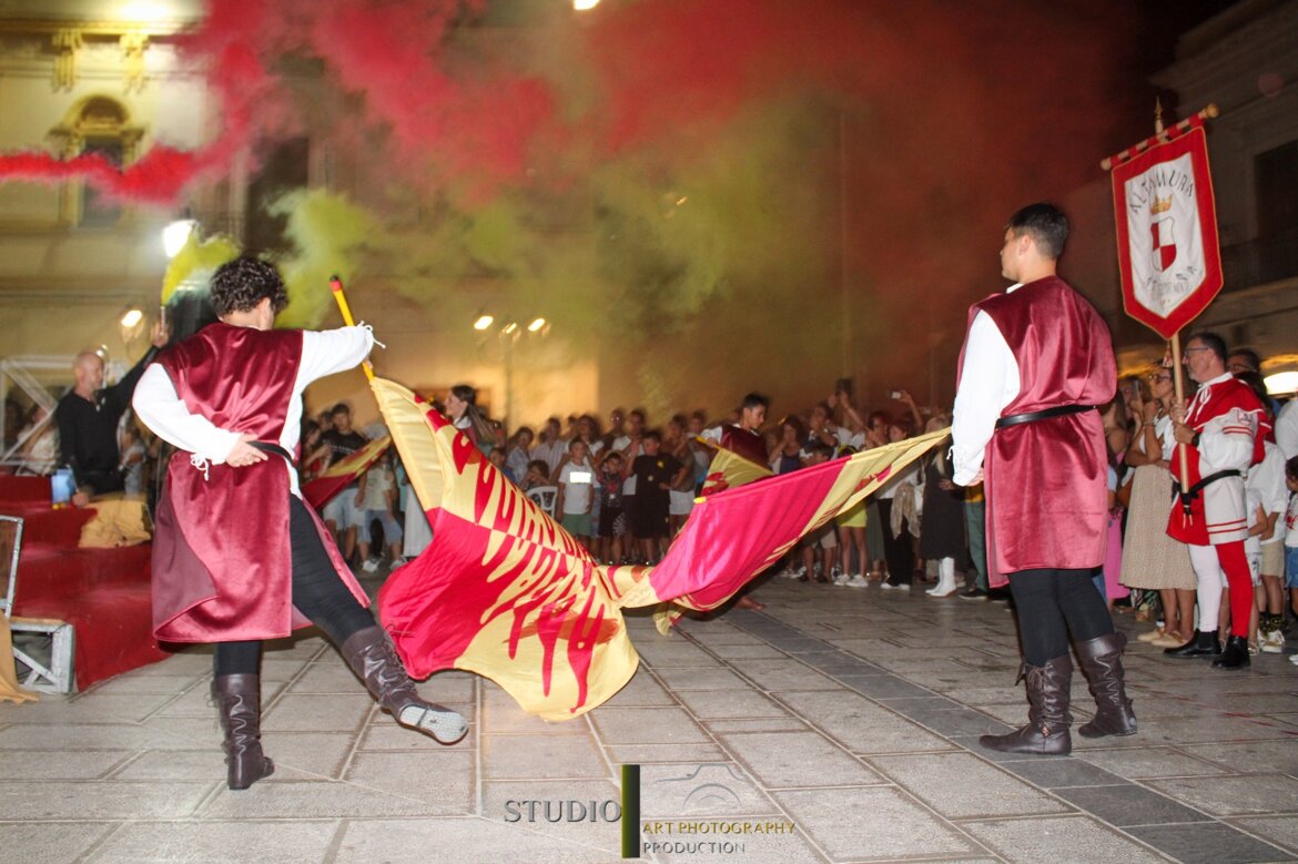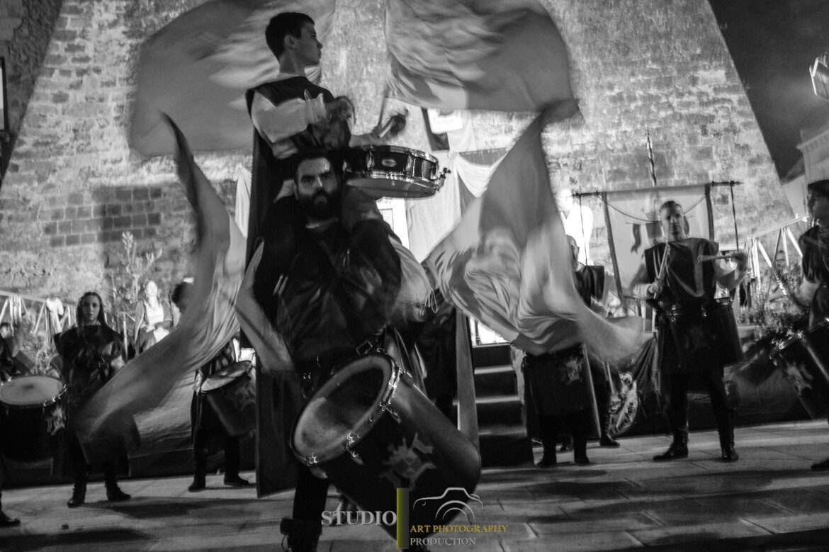 Gli Avium Sodalitas animano eventi e spettacoli storici attraverso il rullo potente dei tamburi, la danza elegante delle bandiere, i duelli spettacolari degli spadaccini e il poderoso squillo delle chiarine. Dai cortei medievali alle feste in piazza, dalle celebrazioni religiose agli eventi privati, ogni nostra esibizione è un autentico viaggio nel Quattrocento pugliese. Scopri l’incanto dei nostri spettacoli che hanno già emozionato migliaia di spettatori, facendo rivivere con passione la storia e le sue epiche gesta.